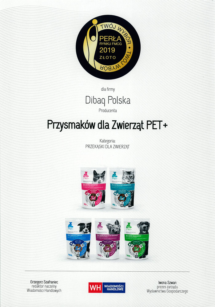 Tím prvním bylo získání ocenění v rámci průzkumu „Najlepszy Produkt – Wybór Konsumentów®“, jehož výsledky byly vyhlášeny v lednu letošního roku. Reprezentativní vzorek 1 000 respondentů, spotřebitelů, vybíral nejlepší produkty a značka thePet+ si v rámci kategorie Výrobky pro zvířata vybojovala zlatou medaili.